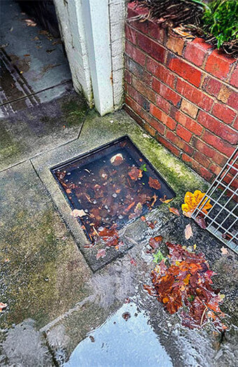Clearing of blocked overflow relief gullies that aren’t draining properly during rain events, preventing water ingress to buildings.
